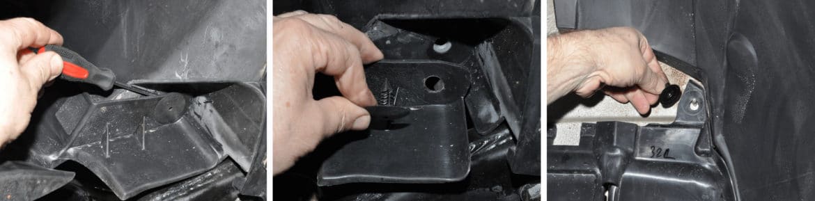 Tháo khối phía sau bộ phận bảo vệ trên farovet và từ phím T-20, phát triển hai chốt của vít, được làm trắng từ các mũi tên trong hình dọc theo phía dưới.