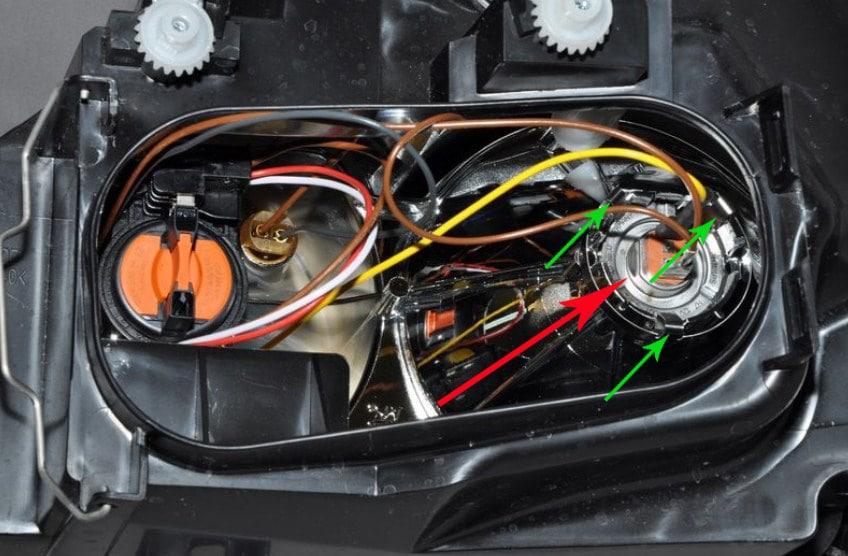Thiết bị được lưu trữ thông qua một khối hai chốt. Chỉ cần thử và tháo đèn cũ ra khỏi tổ và đặt một cái mới. Vì có, hãy gửi một đồng chí, bỏ lỡ khối, chỉ cần tránh đường của bạn.