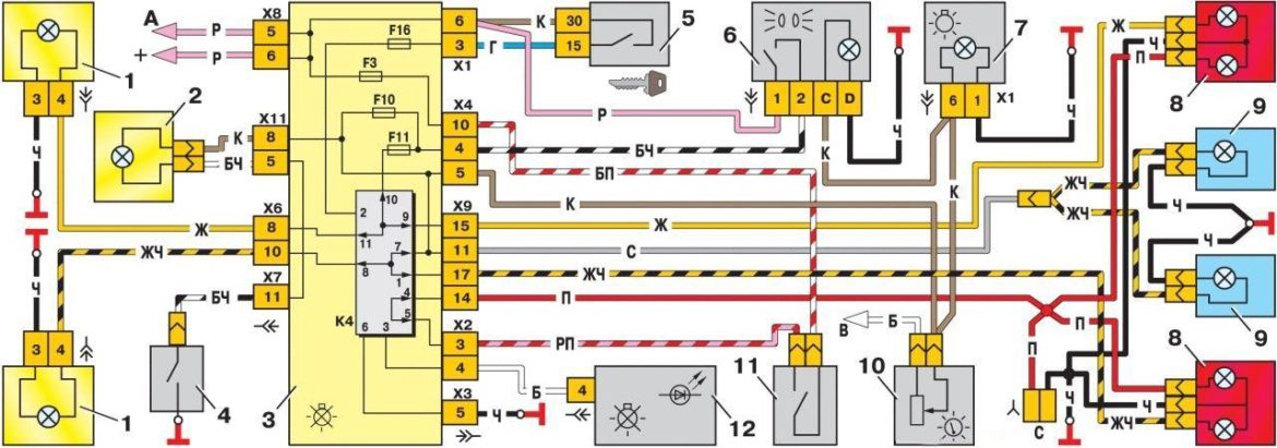 Sơ đồ được xóa theo sơ đồ (hình bên phải trong bài viết). Ako cháy hàng F10, trước sau, thước đo nước lyavata, đèn khoang máy, đèn ốp phần ứng và biển số đều sáng đẹp. Ako predpazitel F11 cháy hết, trước và sau, đo trên nướu của vùng viền, mờ dần vednaga.