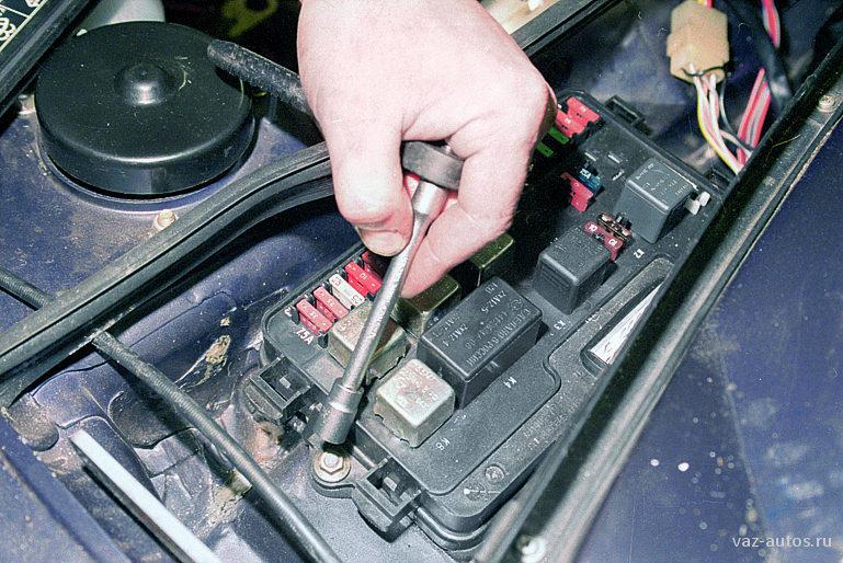 Đã loại bỏ điện dung và loại trừ khỏi đầu nối (trên ảnh, khối VAZ 2109 được gắn với cài đặt tương tự)