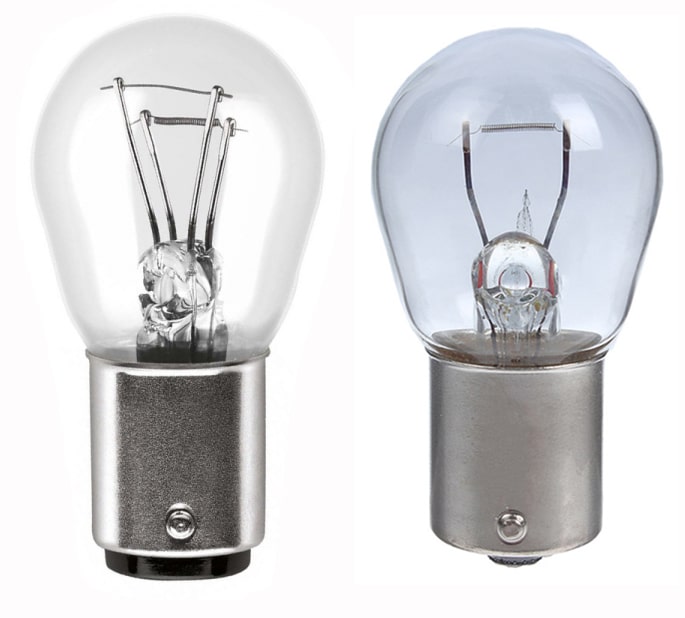 Bóng đèn P21/5W và P21WĐèn P21/5W và P21WĐèn P21 / 5W (void) và P21W, chui vào hàng đèn hậu trên VAZ 2115