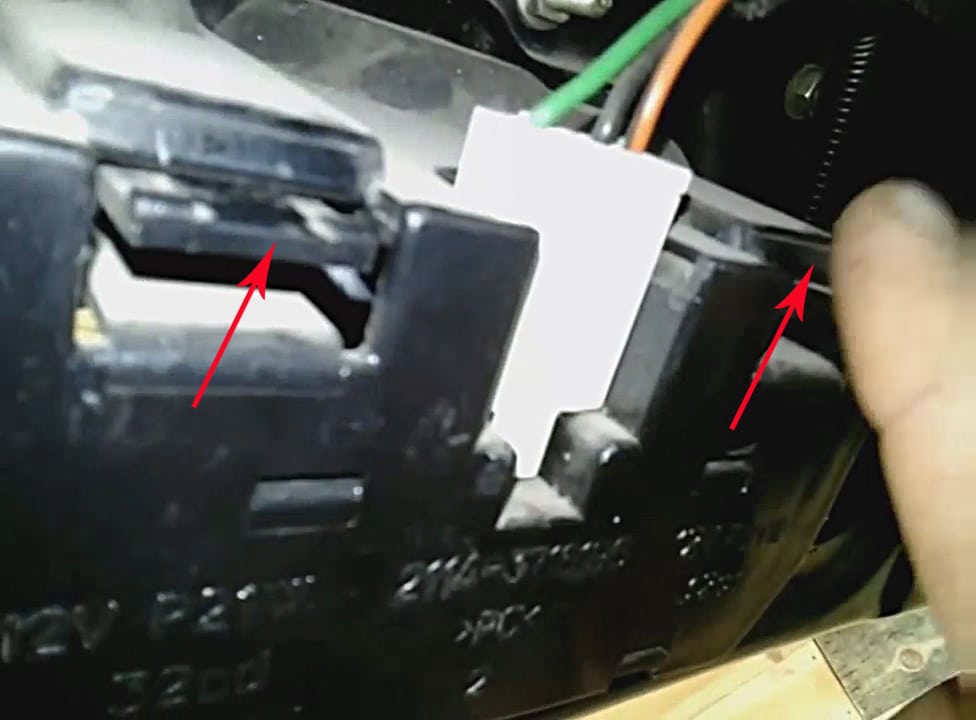 Chốt Izstiskvame bằng tuốc nơ vít hoặc chỉ trên giá đỡ (đặt nó gần hệ điều hành trung tâm trên xe) và đèn chiếu sáng trước mahvam cùng với đèn.