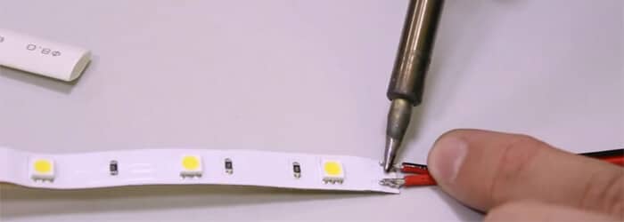Trước khi hàn trên dây dẫn của băng LED, trebva: