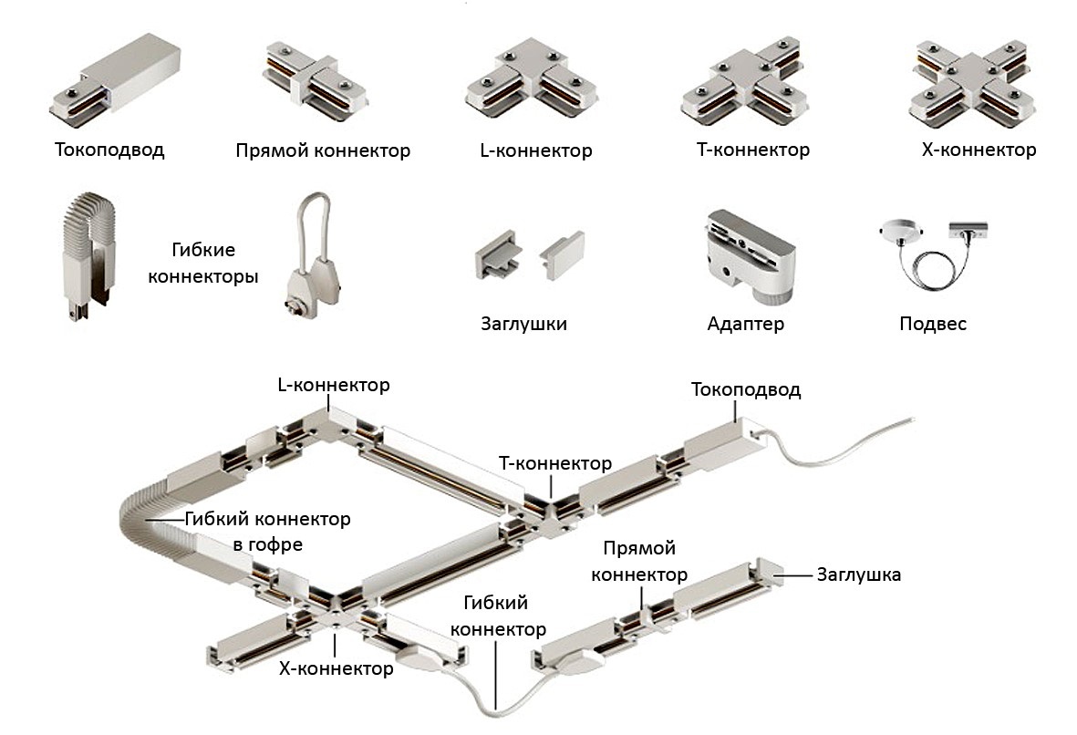 Vì có, hệ thống phức tạp từ một chút trang web, nó sử dụng các thành phần bổ sung. Ví dụ các phần tử svarzvaschi. Với sự trợ giúp của các đầu nối L-, T-, X, bạn có thể uốn hệ thống đầu thành hình chữ L hoặc hình tay phải. Ngoài ra, các đầu nối của bộ ghép nối cung cấp khả năng bảo vệ điện áp từ một kolovozit với nhau, nằm ngay dưới dây chuyền lắp ráp chính trên đường dây ánh sáng trên kolovozit.